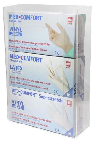 Unser praktischer Handschuhdispenserhalter aus hochwertigem Acryl ist die perfekte Lösung für Ihre Handschuhdispenser-Organisation. Mit Platz für drei Dispenser bietet er eine effiziente und platzsparende Möglichkeit, verschiedene Handschuhgrößen oder -typen griffbereit zu halten.