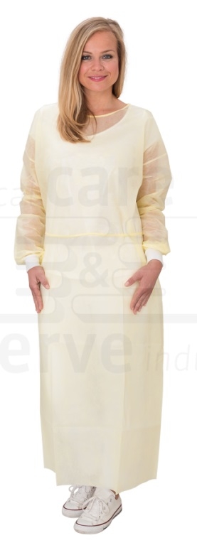 WIROS-care&serve-Hygiene, Einweg-Vlies-Kittel, Einmal-Mantel, Schutzkittel, PE Komplett Laminierungan, Strickbündchen, gemäß EN 14126, 140 x 135 cm, Pkg á 10 Stück, VE = 100 Stück, gelb
