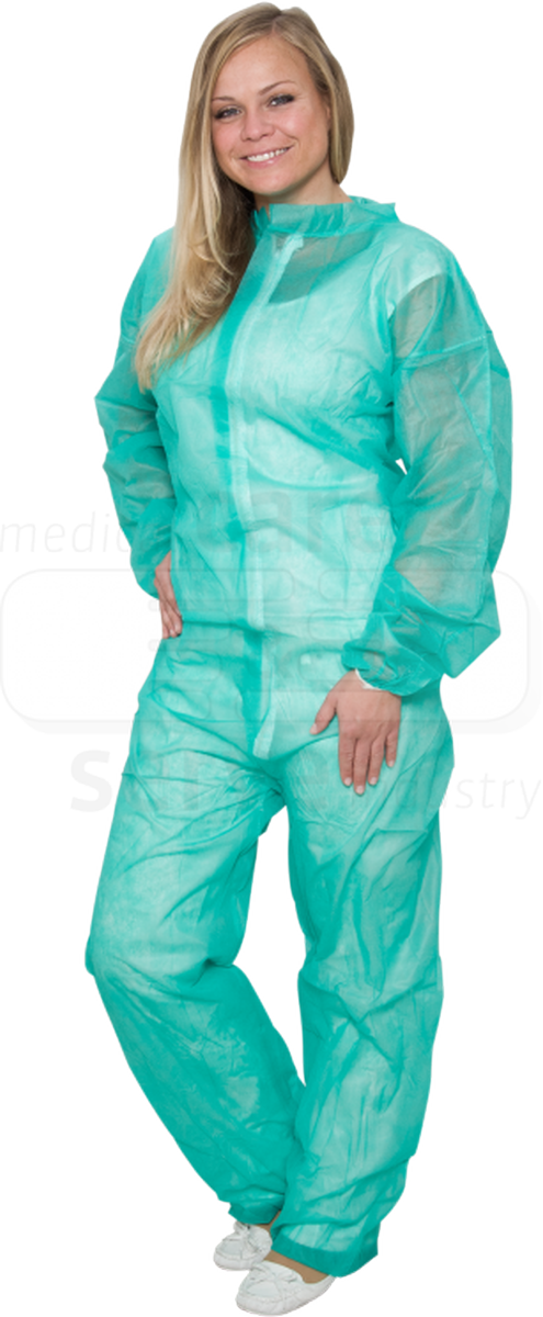WIROS-care&serve-Hygiene, Einweg-Vlies Overall, Einmal-Schutz-Anzug, 32 g/m², 140 x 178 cm, grün, VE = 50 Stück