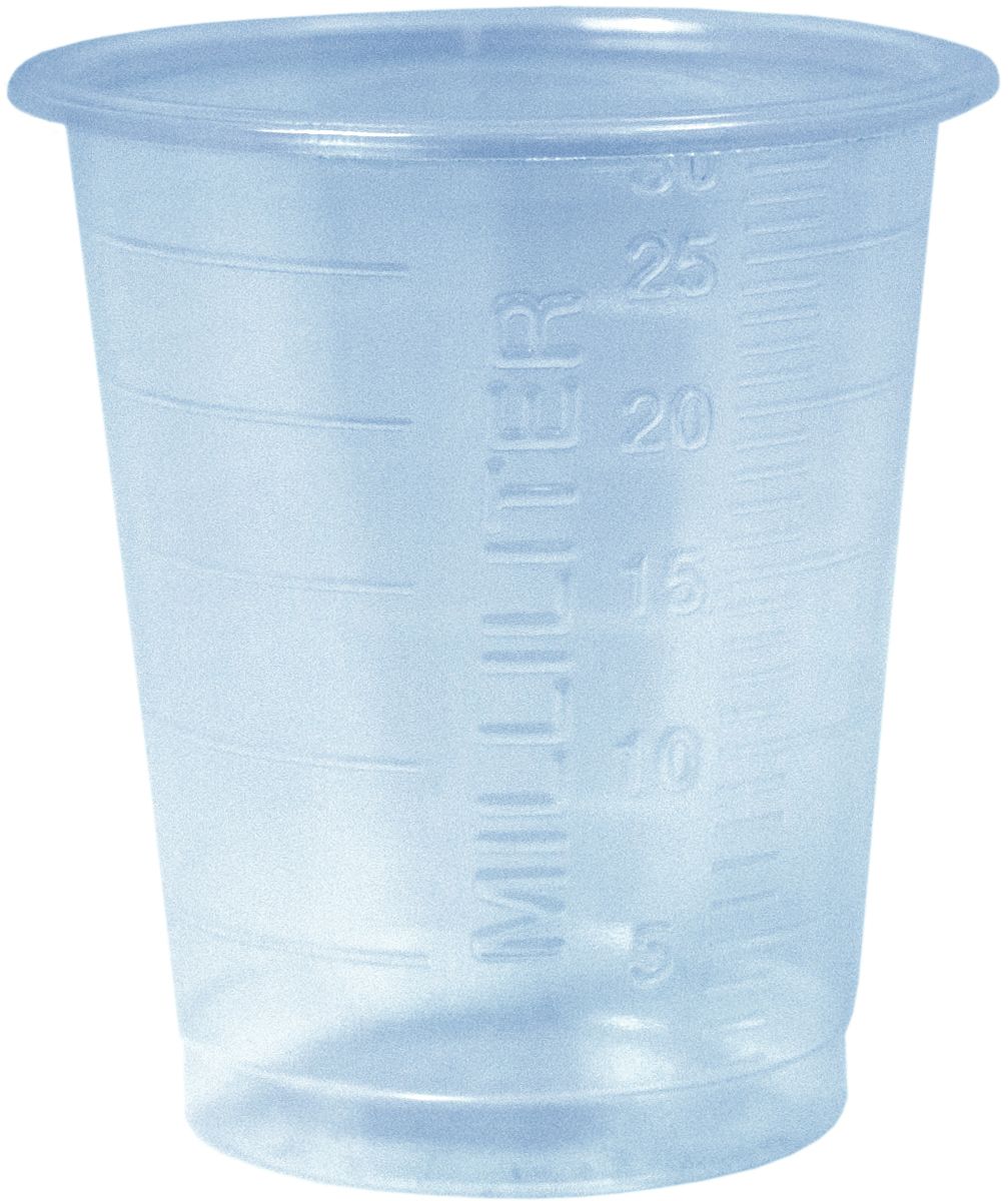 AMPRI-Hygiene, Einweg-Medizinbecher, 30 ml, graduiert, VE = 60 Beutel á 80 Stück, blau