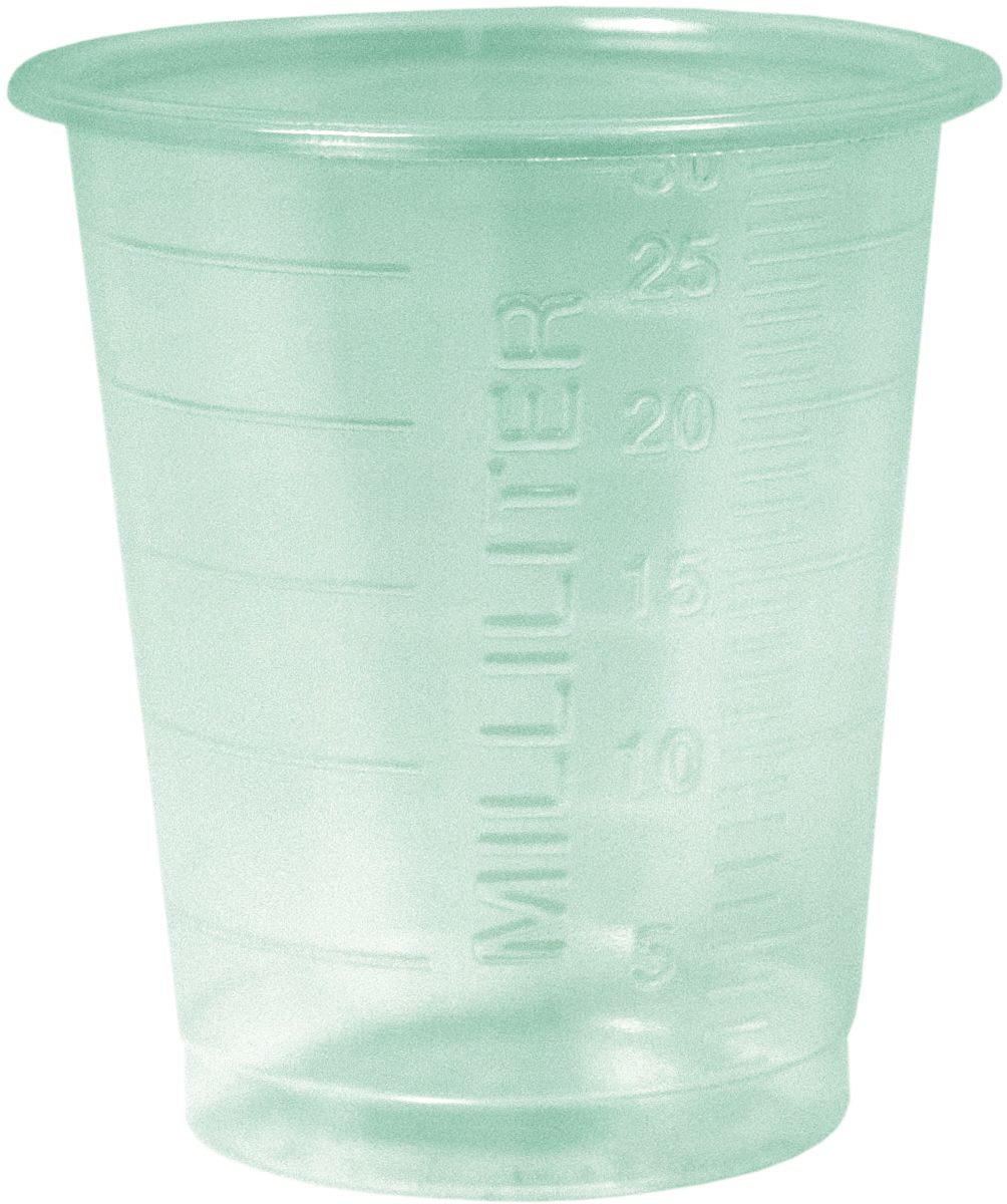 AMPRI-Hygiene, Einweg-Medizinbecher, 30 ml, graduiert, VE = 60 Beutel á 80 Stück, grün