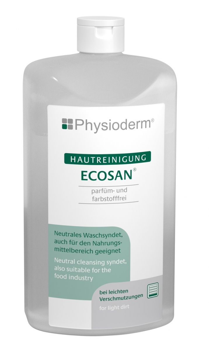Die klare Waschlotion ist seifen- und alkalifrei und besitzt einen hautneutralen pH-Wert, der die natürliche Hautbarriere schützt. ECOSAN entfernt effektiv leichte Verschmutzungen, ohne die Haut zu reizen oder auszutrocknen. Es eignet sich sowohl für die Handreinigung als auch für die Ganzkörperreinigung.