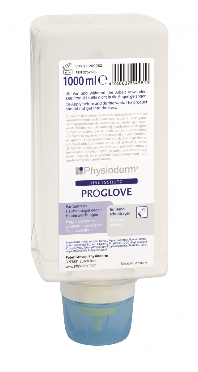 PROGLOVE ist ein innovatives Hautschutzgel, speziell entwickelt für Personen, die regelmäßig okklusive Schutzkleidung wie Handschuhe oder Gummistiefel tragen müssen. Das transparente, alkoholhaltige Gel schützt die Haut vor unerwünschten Hauterweichungen und reduziert die Quellung der Hornhaut unter Luftabschluss.