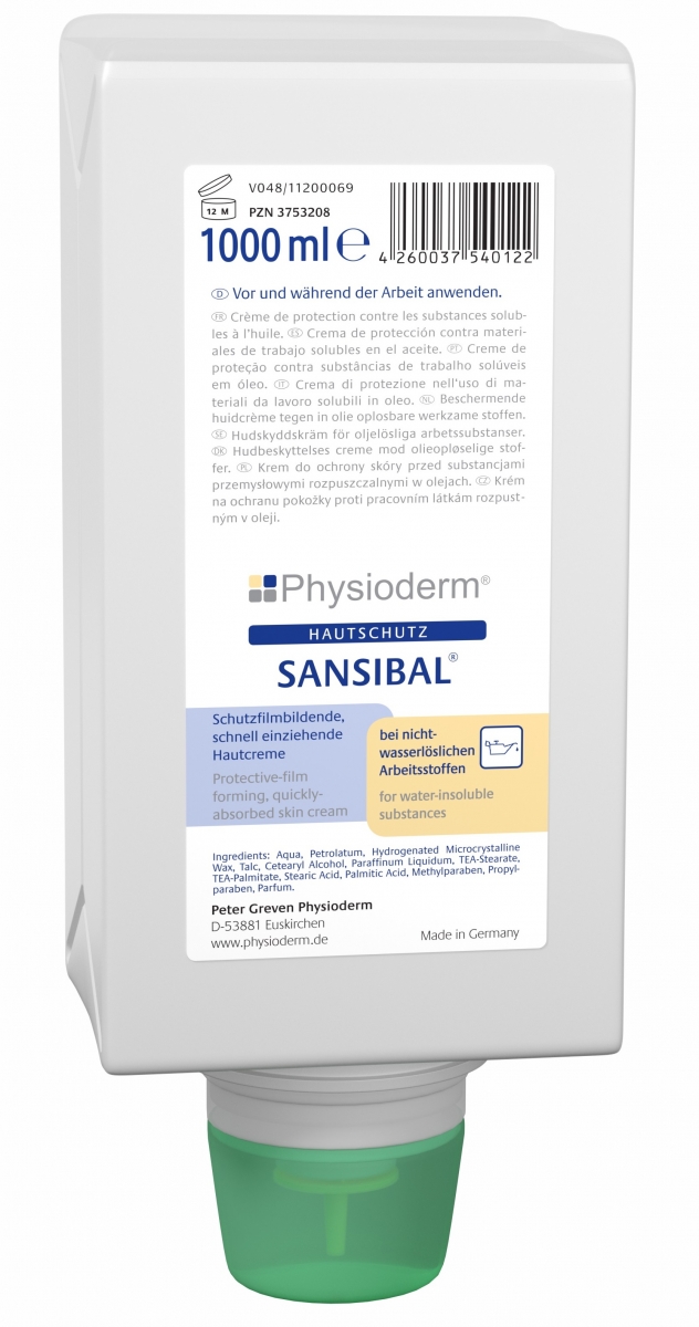 SANSIBAL ist die ideale Hautschutzcreme für den professionellen Einsatz beim Umgang mit nicht-wasserlöslichen Arbeitsstoffen. Diese innovative Formel bildet einen effektiven Schutzfilm auf der Haut, der das Eindringen von Ölen, Fetten und nicht-wassermischbaren Kühlschmierstoffen verhindert. Gleichzeitig bleibt die Hautatmung und Fingergriffigkeit voll erhalten.
