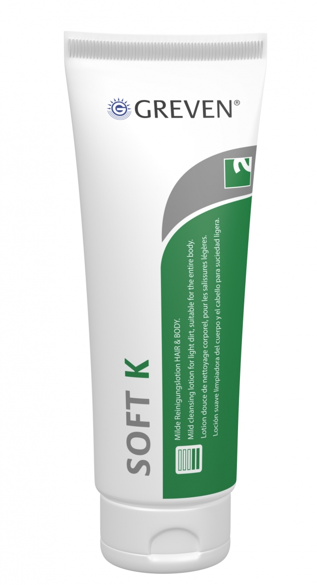 Dank der ausgewogenen Kombination hochwertiger Waschrohstoffe reinigt GREVEN SOFT K gründlich und schonend zugleich. Pflegende Substanzen wie Allantoin sorgen während der Anwendung für eine effektive Rückfettung und regulieren den Feuchtigkeitshaushalt der Haut. Das Produkt ist besonders hautfreundlich, da es dem natürlichen pH-Wert der menschlichen Haut angepasst und seifenfrei ist.
