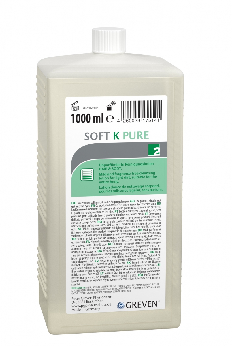 GREVEN-Hygiene, REINIGUNGSLOTION, Soft K PURE, unparfümiert, 1000 ml Flasche