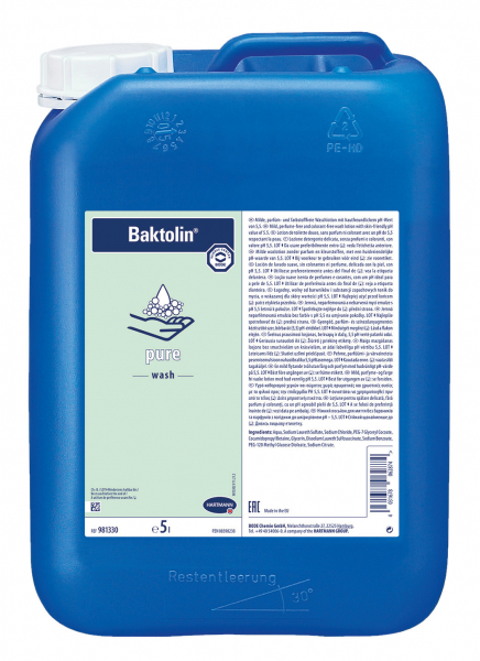 Baktolin® pure ist eine milde Waschlotion, die speziell für die tägliche Händereinigung entwickelt wurde. Sie eignet sich hervorragend für den Einsatz in medizinischen Einrichtungen, Pflegeheimen und anderen Bereichen, in denen Hygiene eine hohe Priorität hat. Das Produkt reinigt die Haut sanft, ohne sie auszutrocknen, und ist besonders für empfindliche Haut geeignet. Dank seiner pH-neutralen Formulierung (pH-Wert 5,5) unterstützt es den natürlichen Säureschutzmantel der Haut und minimiert das Risiko von Irritationen.