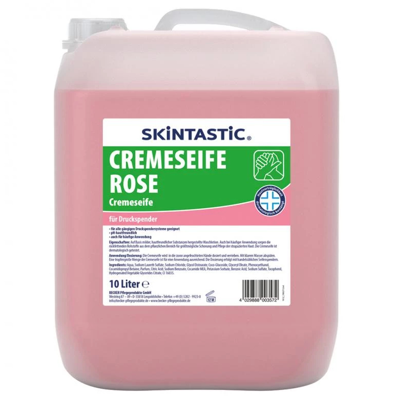 Das Produkt zeichnet sich durch seinen zarten Rosenduft aus, der für eine erfrischende und feminine Note sorgt. Die cremige Konsistenz ermöglicht eine einfache Dosierung und eine gute Verteilung auf der Haut. Es ist pH-hautneutral und enthält pflegende Inhaltsstoffe, die die natürliche Feuchtigkeitsbalance der Haut unterstützen. Besonders hervorzuheben ist die hohe Ergiebigkeit des 10-Liter-Kanisters, der für einen langanhaltenden Vorrat sorgt und Kosten spart.