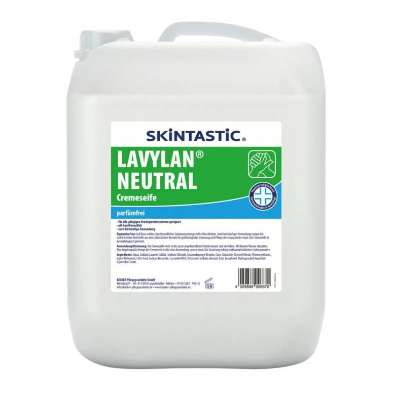 Der Eilfix SKINTASTIC® LAVYLAN® NEUTRAL 10 L ist ein hochwertiger, hautfreundlicher Reiniger, der speziell für die sanfte Pflege und Reinigung entwickelt wurde. Dieses Produkt eignet sich ideal für den Einsatz in Bereichen, wo eine neutrale und duftfreie Formulierung gefragt ist, wie in medizinischen Einrichtungen, Lebensmittelverarbeitung oder sensiblen Arbeitsumfeldern. Es reinigt effektiv ohne die Haut zu reizen und hinterlässt ein angenehmes Gefühl von Frische und Schutz.