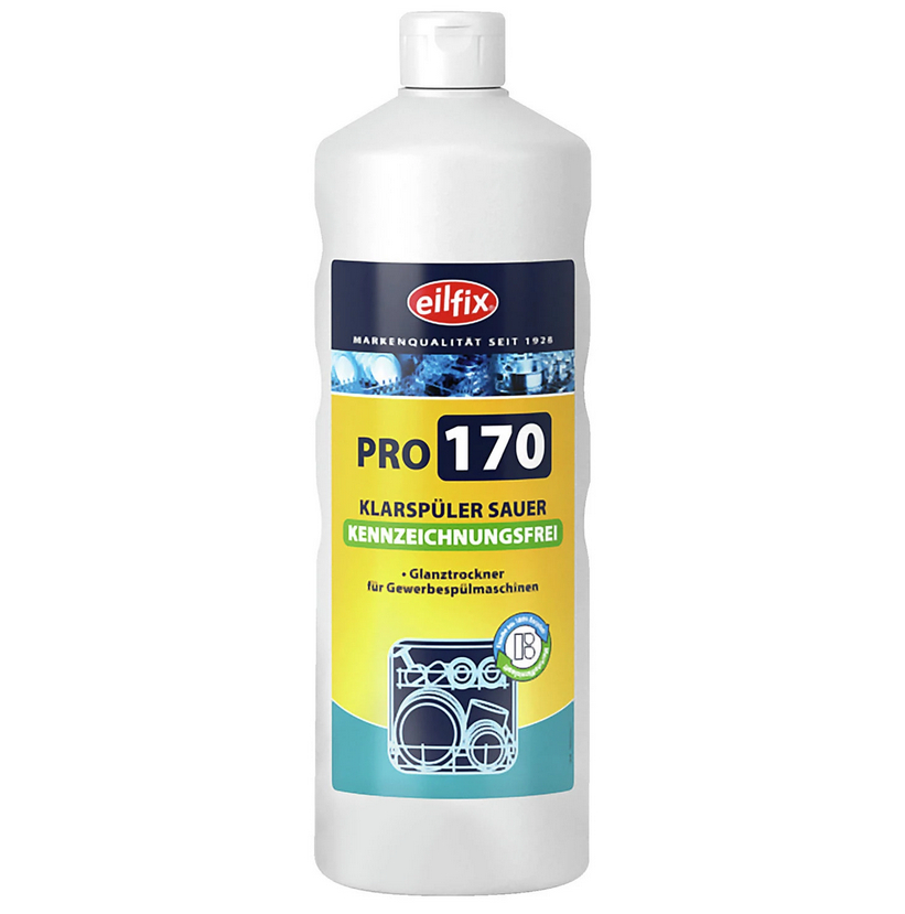 Der Eilfix PRO 170 Klarspüler ist ein hochkonzentrierter, ökonomischer Klarspüler für den gewerblichen Einsatz in Geschirrspülmaschinen. Er sorgt für streifenfreien Glanz und einen brillanten, klaren Abfluss auf Porzellan, Steingut, Besteck, Metall und Aluminium. Der Klarspüler ist besonders schaumarm und neutralisiert verbleibende Alkalien, wodurch Kalkablagerungen effektiv verhindert werden. Die hervorragende Netzkraft ermöglicht eine schnelle und gründliche Trocknung. Er kann sowohl mit automatischer als auch manueller Dosierung in allen gewerblichen Geschirrspülmaschinen verwendet werden.