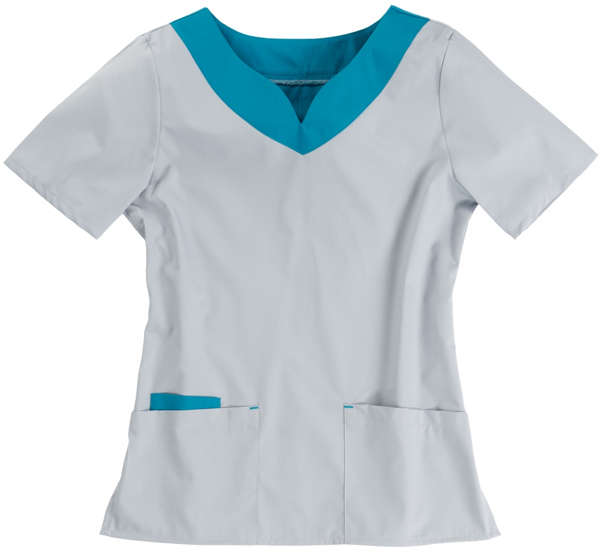 BEB-Jobwear, Damenkasack, Arbeits-Berufs-Kasack, Stretchgewebe, 150 g/m², hellgrau/petrol
