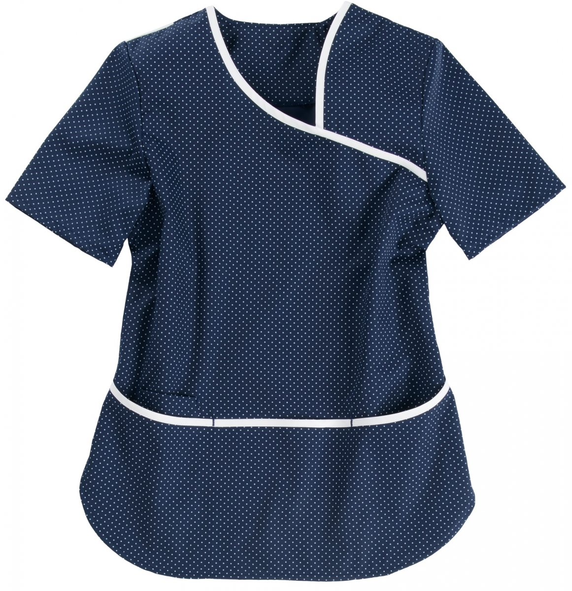 BEB-Jobwear, Damenkasack, Arbeits-Berufs-Kasack, Stretchgewebe, 195 g/m², marine/weiß gepunktet