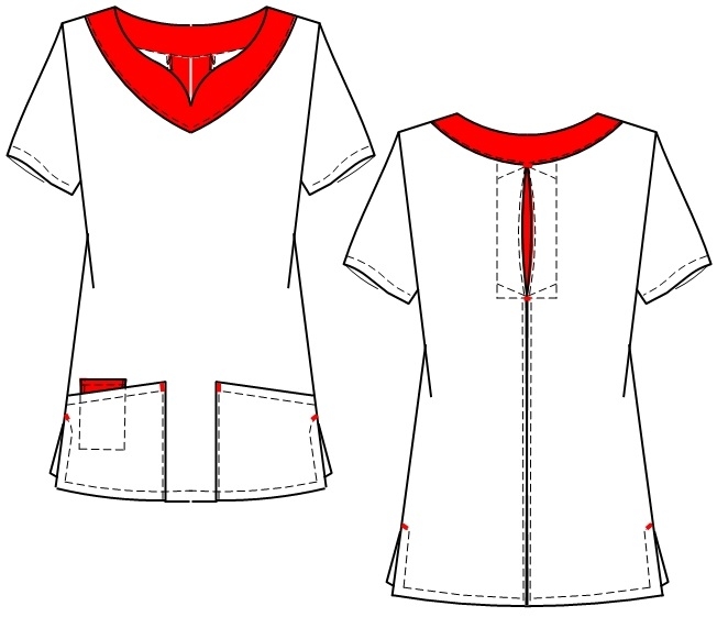 Der herzförmige Halsausschnitt und die kurzen Ärmel verleihen dem Kasack eine feminine Note, während die Bewegungsfalte im Schulterbereich optimale Bewegungsfreiheit bietet. Praktische Details wie zwei Seitentaschen und eine spezielle Handytasche in Besatzfarbe machen diesen Kasack zu einem unverzichtbaren Begleiter im Arbeitsalltag. Der gerade Saum mit Seitenschlitzen sorgt für zusätzlichen Komfort und Bewegungsfreiheit.