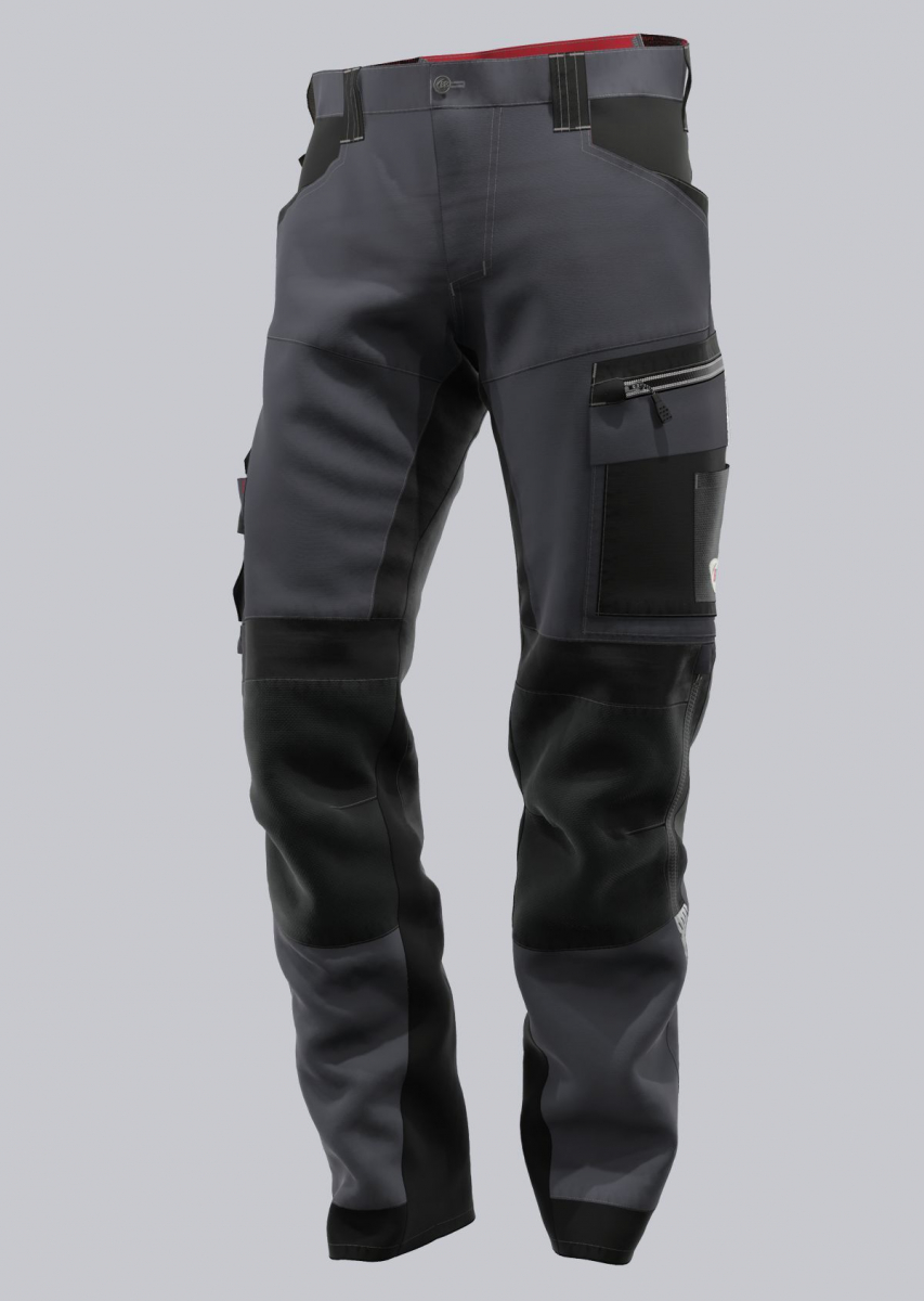 Ein besonderes Highlight sind die Kniepolstertaschen aus strapazierfähigem Cordura® mit Reißverschluss und Belüftungsöffnung, die in Kombination mit den separat erhältlichen BP® Kniepolstern optimalen Knieschutz gemäß EN 14404 gewährleisten. Reflexelemente am Bein und an der Schenkeltasche erhöhen die Sichtbarkeit und damit die Sicherheit bei schlechten Lichtverhältnissen.