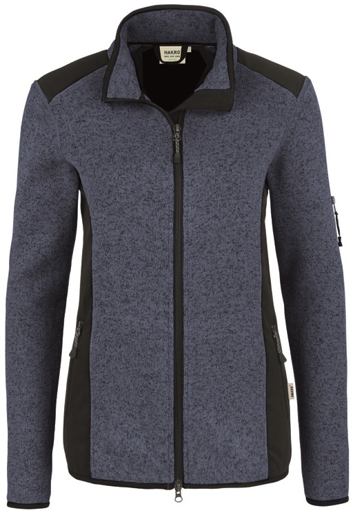 HAKRO-Jobwear, Damen-Strick-Fleece-Jacke, Strickfleece-Arbeits-Berufs-Jacke, Churchill, 280 g / m², marine meliert