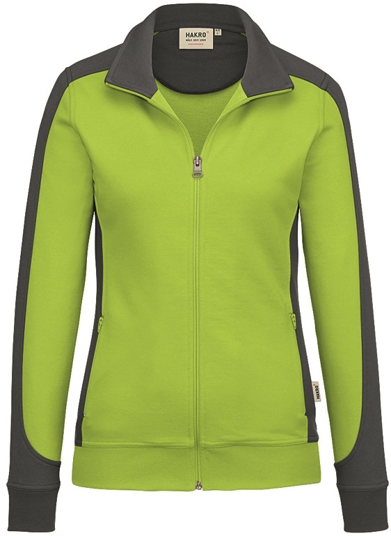 HAKRO-Jobwear, Damen-Sweat-Jacke, Sweat-Arbeits-Berufs-Jacke, Contrast, Performance, 300 g / m², kiwi