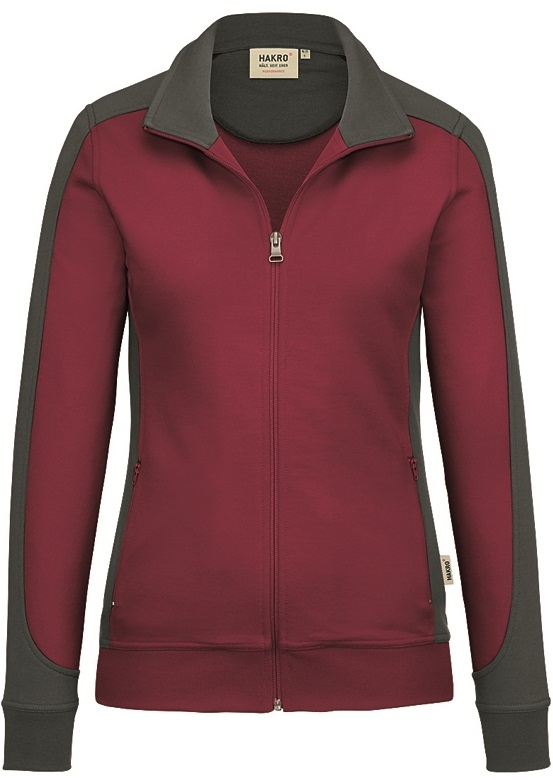 HAKRO-Jobwear, Damen-Sweat-Jacke, Sweat-Arbeits-Berufs-Jacke, Contrast, Performance, 300 g / m², weinrot
