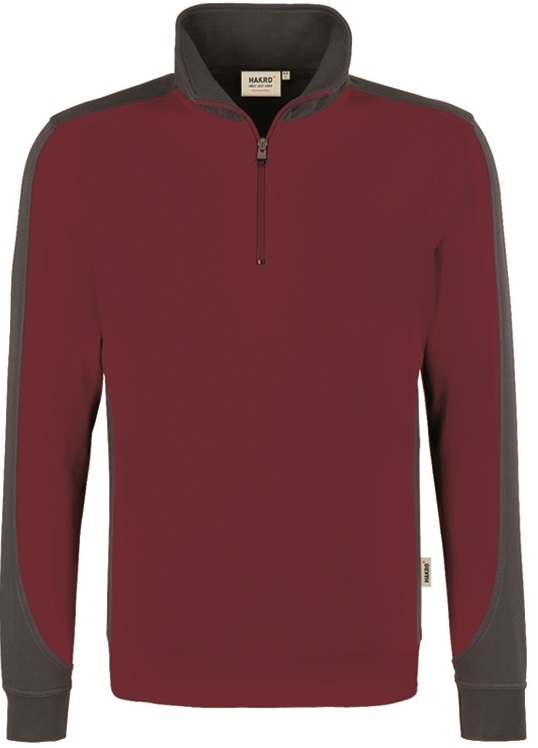 HAKRO-Jobwear, Zip-Sweatshirt, Arbeitsshirt,, Arbeitsshirt, Contrast, Performance, 300 g / m², weinrot