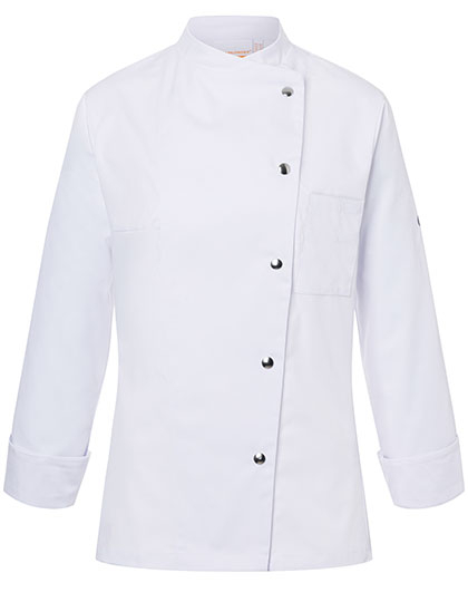 Die Karlowsky Kochjacke Larissa White ist eine hochwertige Berufsbekleidung, die speziell für den Einsatz in der Gastronomie und im Küchenbereich entwickelt wurde. Sie eignet sich ideal für Köchinnen und Servicekräfte, die Wert auf Komfort, Funktionalität und ein professionelles Erscheinungsbild legen. Die Jacke bietet eine optimale Passform und Bewegungsfreiheit, was sie zu einem zuverlässigen Begleiter in anspruchsvollen Arbeitsumfeldern macht.Ein besonderes Merkmal ist das atmungsaktive Material, das Feuchtigkeit ableitet und für ein angenehmes Tragegefühl sorgt, auch bei langen Schichten. Die Jacke ist mit hochwertigen Perlmuttknöpfen ausgestattet, die nicht nur ästhetisch ansprechend sind, sondern auch langlebig und pflegeleicht. Die taillierte Schnittform unterstreicht eine feminine Silhouette, ohne die Funktionalität einzuschränken. Praktische Details wie eine Brusttasche und verstellbare Ärmel machen sie vielseitig einsetzbar.Durch ihre robuste Verarbeitung widersteht die Kochjacke täglichen Belastungen wie Hitze, Flecken und häufigem Waschen. Sie erfüllt hohe Standards an Hygiene und ist maschinenwaschbar bis 95°C, was eine einfache Reinigung ermöglicht. Insgesamt kombiniert die Larissa White Eleganz mit Praktikabilität und ist eine smarte Wahl für professionelle Küchenumgebungen.Die Jacke hebt sich durch ihre Nachhaltigkeitsaspekte ab, da sie aus zertifizierten Materialien gefertigt wird, die umweltfreundlich produziert sind. Ob in Restaurants, Hotels oder Cateringservices – sie unterstützt effizientes Arbeiten und trägt zu einem gepflegten Auftritt bei.Wichtige Artikelmerkmale / Besonderheiten