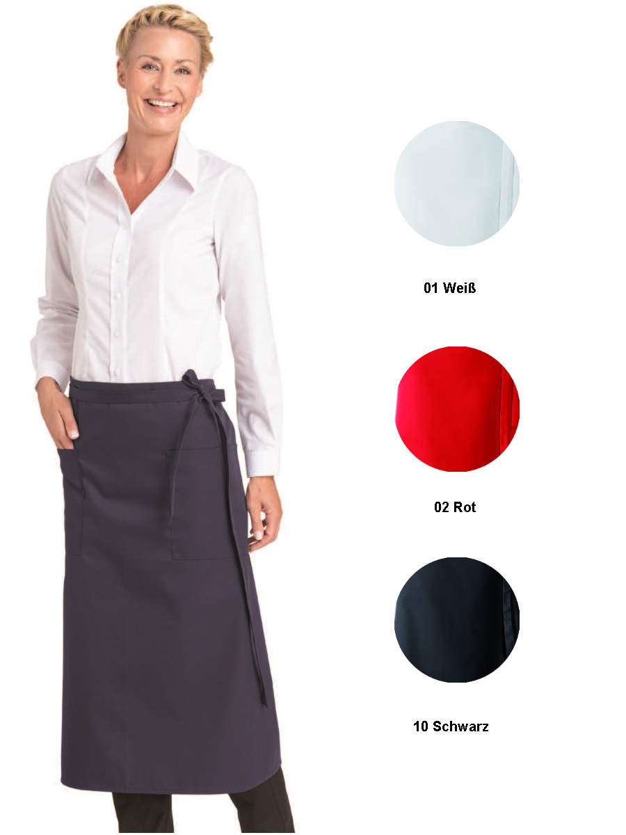 Dank des pflegeleichten Materials ist die Schürze besonders langlebig und einfach zu reinigen. Wählen Sie aus vier klassischen Farben - Weiß, Rot, Marine oder Schwarz - die perfekt zu Ihrem Ambiente oder Corporate Design passen. Mit einem Gewicht von nur 268 g ist sie angenehm leicht zu tragen, ohne dabei an Qualität einzubüßen.