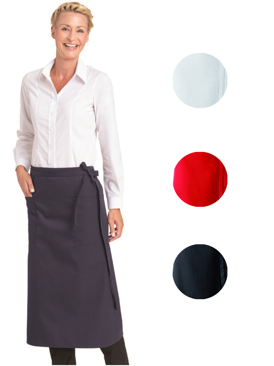 Die Schürze ist nicht nur funktional, sondern auch pflegeleicht - ideal für den täglichen Gebrauch in geschäftigen Küchen oder zu Hause. Die Bindebänder aus Oberstoff ermöglichen eine individuelle Anpassung für optimalen Tragekomfort. Erhältlich in vier klassischen Farben - Weiß, Rot, Marine und Schwarz - passt sie sich jedem Ambiente an.
