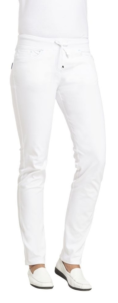 LEIBER-Jobwear, Damen-Arbeits-Berufs-Hose, Bundhose, Länge ca. 88 cm, ca. 270 g/m², weiß/türkis