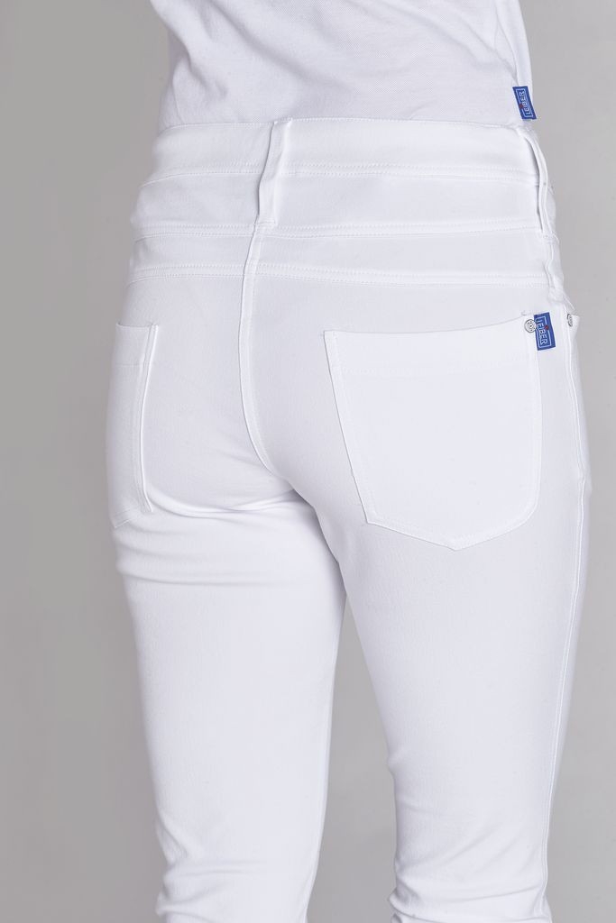 Dank der pflegeleichten Materialmischung aus Baumwolle, Polyester und Elasthan ist diese Hose nicht nur bequem, sondern auch besonders strapazierfähig und formbeständig. Die klassische weiße Farbe lässt sich vielseitig kombinieren und passt zu zahlreichen Outfits.
