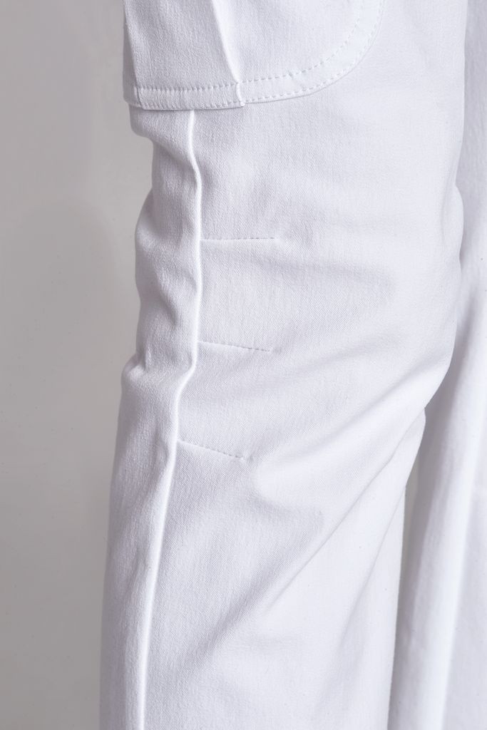 In klassischem Weiß gehalten, lässt sich diese Hose vielseitig kombinieren und ist ein Must-have für jede Garderobe. Ob für den Büroalltag, einen Stadtbummel oder einen entspannten Nachmittag im Café - diese Hose ist Ihr zuverlässiger Begleiter für jede Gelegenheit.