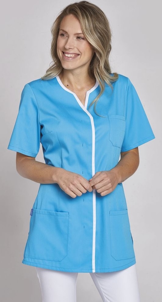 LEIBER-Jobwear, Damenkasack, Arbeits-Berufs-Kasack, türkis/weiss
