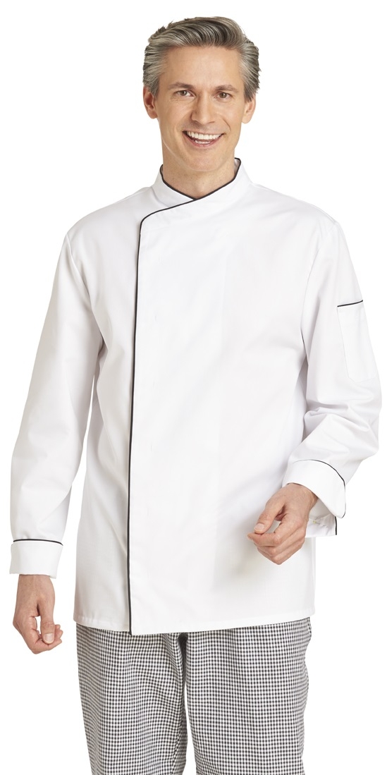 Dank der CLEAN DRESS-Zertifizierung ist die Jacke für die Industriewäsche geeignet, was sie besonders praktisch für den professionellen Einsatz macht. Erhältlich in den Farbkombinationen weiß/schwarz und schwarz/weiß, passt sie sich jedem Küchenambiente an. Mit Größen von 42 bis 64 finden Sie garantiert die perfekte Passform.