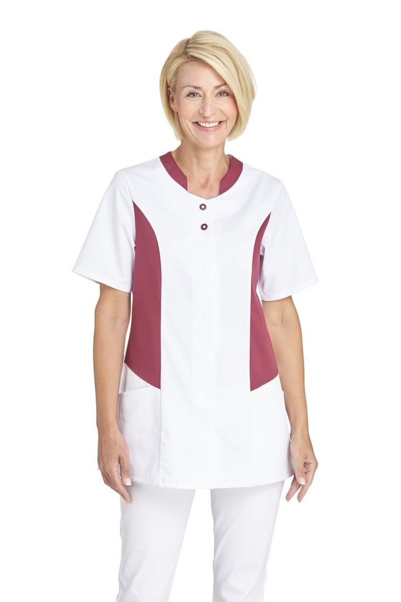 LEIBER-Jobwear, Hosenkasack, Arbeits-Berufs-Kasack, 1/2 Arm, mit Druckknopfleiste, 190 g/m², weiß/beere