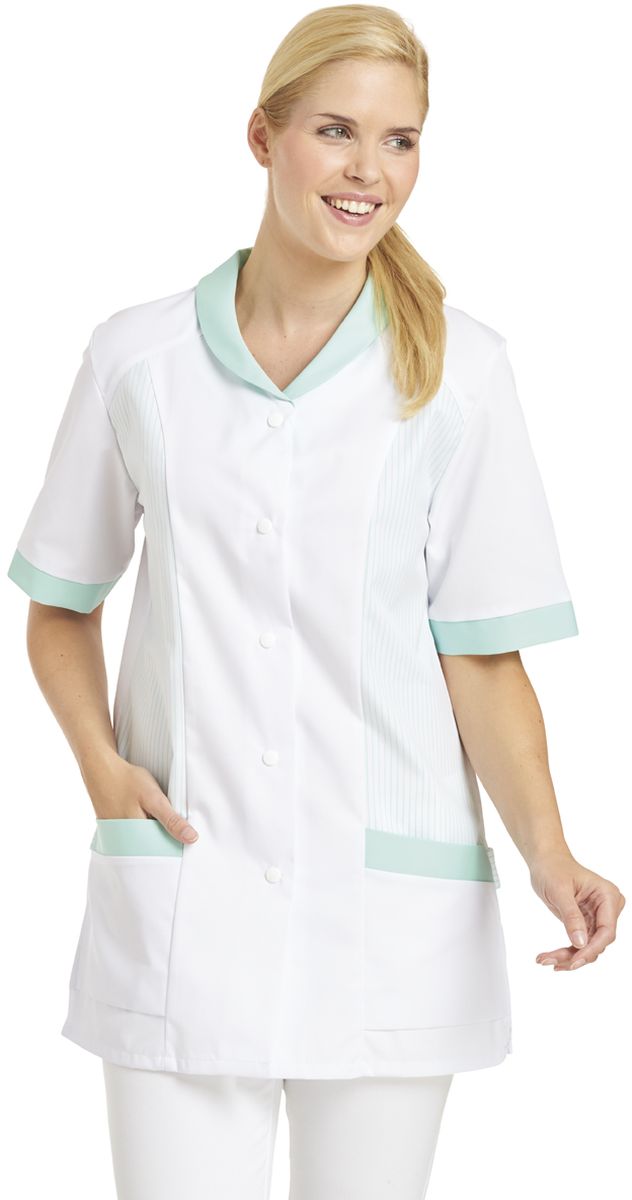 LEIBER-Jobwear, Hosenkasack, Arbeits-Berufs-Kasack, 1/2 Arm, weiß/mint