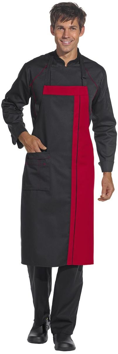 LEIBER-Jobwear, Latzschürze, Gastro-Arbeits-Berufs-Schürze, Vorbinder, 100 cm, schwarz/rot