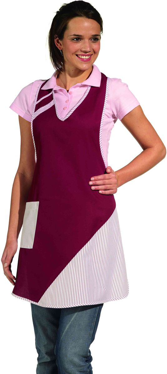 LEIBER-Jobwear, Latzschürze, Gastro-Arbeits-Berufs-Schürze, Vorbinder, ca. 215g/m², bordeaux/weiß