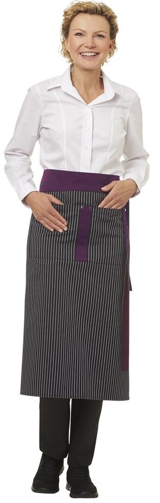 LEIBER-Jobwear, Vorbinder, Gastro-Arbeits-Berufs-Schürze, ca. 200g/m², schwarz/weiß/pflaume