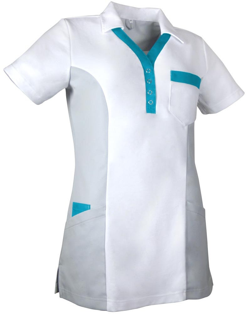 Teamdress-Jobwear-Service, Damen-Polo-Kasack, Arbeits-Berufs-Kasack, weiß/grau/türkis