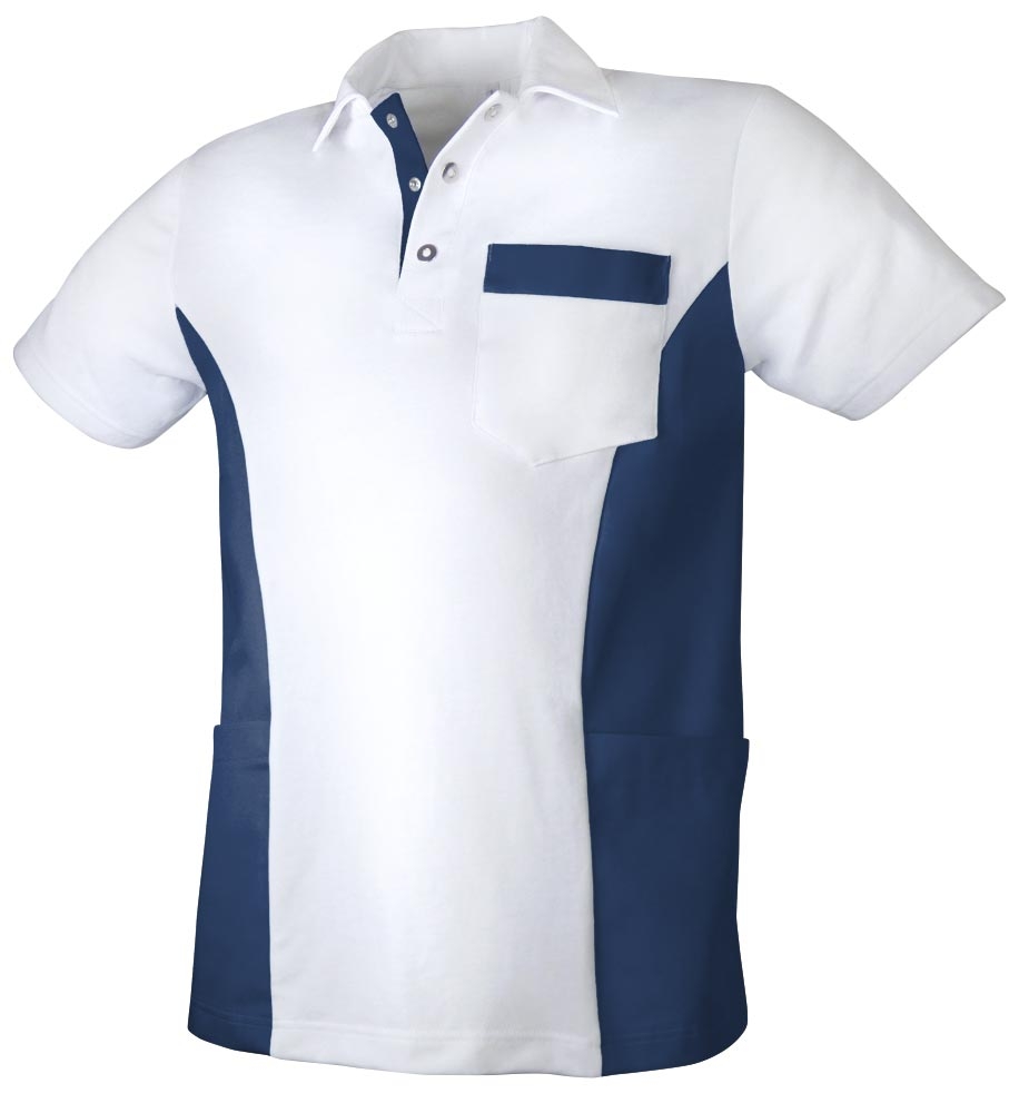 Teamdress-Jobwear-Service, Herren-Polo-Kasack, Arbeits-Berufs-Kasack, mit Brusttasche, weiß/marine
