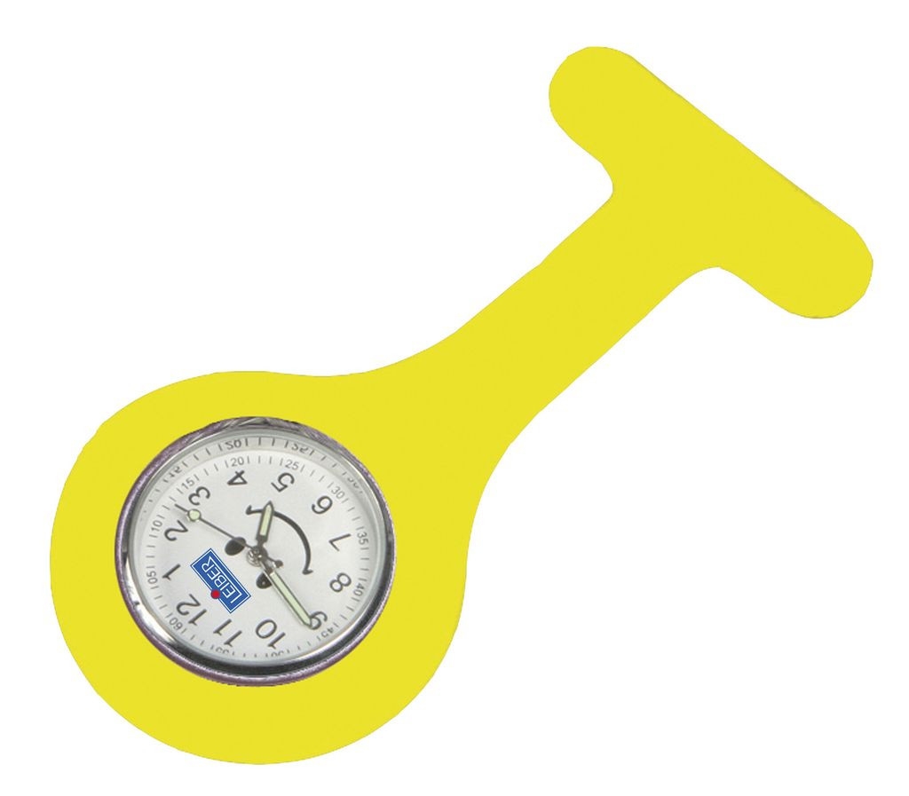 LEIBER-Ansteckuhr, großes Display mit Smiley, gelb
