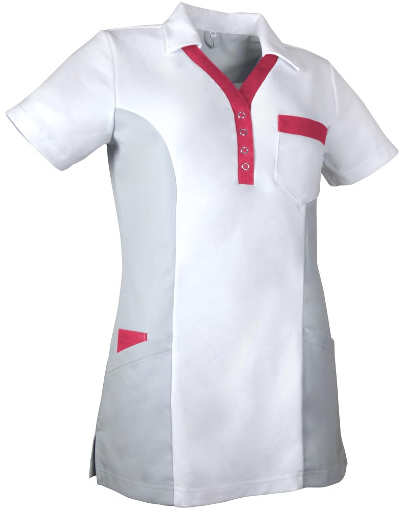 Teamdress-Jobwear-Service, Damen-Polo-Kasack, Arbeits-Berufs-Kasack, weiß/grau/koralle