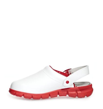Abeba Berufsschuhe Dynamic Clog weiß/rot mit Aufdruck