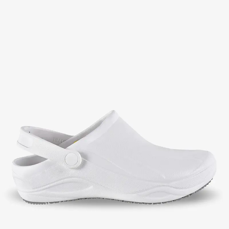 Die OXYPAS-White-Line Clogs sind speziell für den Einsatz in beruflichen Umfeldern wie Krankenhäusern, Pflegeeinrichtungen und Labors konzipiert. Diese Arbeits- und Berufsschuhe bieten hohen Komfort und Schutz für Damen und Herren, die lange Stunden auf den Beinen verbringen. Dank der ESD-Funktion (Electrostatic Discharge) eignen sie sich ideal für Bereiche mit sensibler Elektronik, wo statische Aufladung vermieden werden muss. Die glatte, weiße Oberfläche aus hochwertigem Material sorgt für eine professionelle Optik und einfache Reinigung.