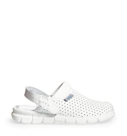 ABEBA-Withe-Line, Dynamic-OB-Damen-und Herren-Arbeits-Berufs-Slipper, Glattleder perforiert, weiß