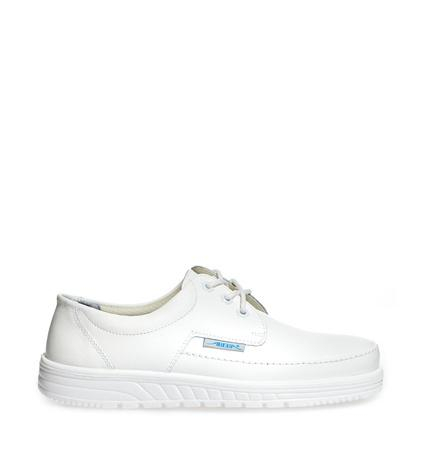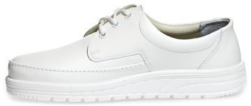 Das hochwertige, genarbte Leder in Weiß sorgt nicht nur für ein professionelles Erscheinungsbild, sondern bietet auch Langlebigkeit und leichte Reinigung. Das atmungsaktive und feuchtigkeitsabsorbierende Mikrofaser-Innenfutter hält Ihre Füße den ganzen Tag über trocken und komfortabel.