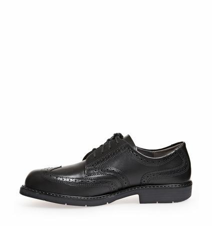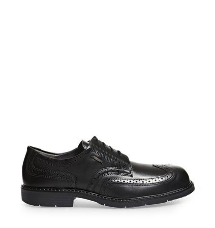 Das hochwertige schwarze Glattleder verleiht den Schuhen ein professionelles Aussehen, während das atmungsaktive Mikrofaser-Innenfutter für optimalen Tragekomfort sorgt. Die Schnürung im Ristbereich ermöglicht eine individuelle Anpassung an Ihren Fuß.
